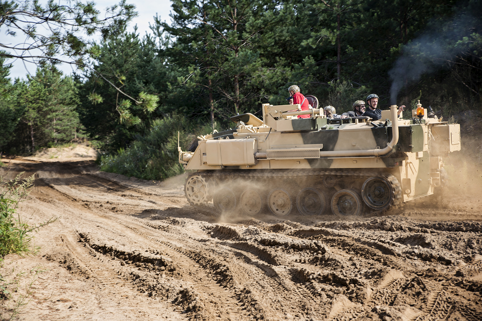 Specialioje 1000 metrų šarvuočių išmaurotoje tankodromo trasoje, padedant instruktoriui įveik 5-7 linksmuosius kalnelius, susipažink su techninėmis transporto priemonių savybėmis jų istorija.
